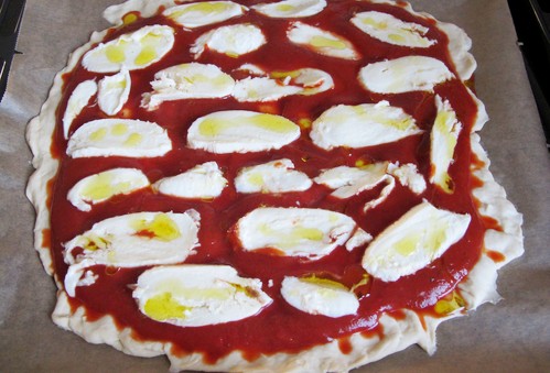 Świeży sos pomidorowy, przygotowany z passaty lub dojrzałych pomidorów, idealnie komponuje się z aromatem oregano i bazylii, nadając pizzy naturalny, lekko kwaskowaty smak. Delikatna mozzarella, równomiernie roztopiona na wierzchu, zapewnia kremową konsystencję i lekko ciągnący się ser. Skropienie oliwą przed pieczeniem dodaje dodatkowego aromatu.