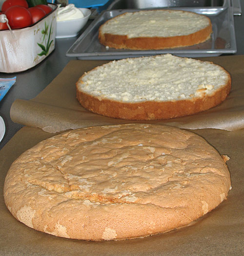 Zwischen die Schichten kannst du Schokoladen-, Vanille- oder Puddingcreme hinzufügen – das verleiht der Torte einen besonderen Geschmack.
