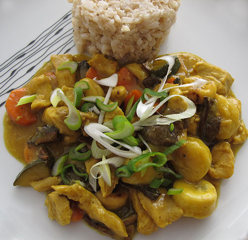 Putenfilet in aromatischer Currysauce mit Gemüse und Cashewkernen vereint zartes Fleisch, knackige Nüsse, saftiges Gemüse und eine cremige Sauce zu einer unglaublich harmonischen Komposition.