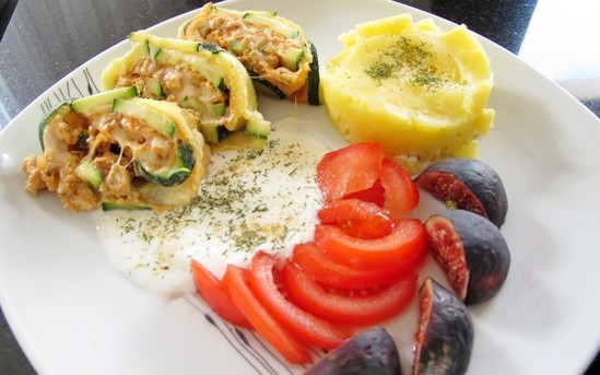 Die Zucchini-Roulade mit Hähnchen und Käse ist eine vollwertige Mahlzeit, die reich an Eiweiß, Vitaminen und Mineralstoffen ist, während sie gleichzeitig einen niedrigen Gehalt an Kohlenhydraten und gesättigten Fetten hat. Es ist eine leichte, aber sättigende Option für alle, die sich gesund ernähren und gleichzeitig auf ihre Figur achten möchten. Sie kann als Hauptgericht mit leichten Beilagen wie einem Salat oder Knoblauchjoghurt serviert werden, was die Nährstoffwerte der Mahlzeit zusätzlich verbessert.