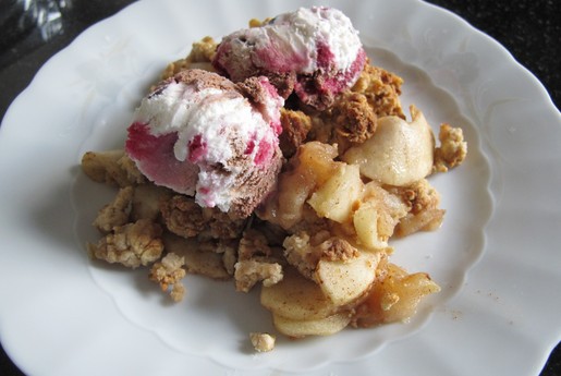 Podanie: Podawaj crumble na ciepło, opcjonalnie z jogurtem naturalnym lub łyżką jogurtu greckiego, co dodaje fajnej kwasowości i kremowości. Można też podać z lodami jak na zdjęciu.
