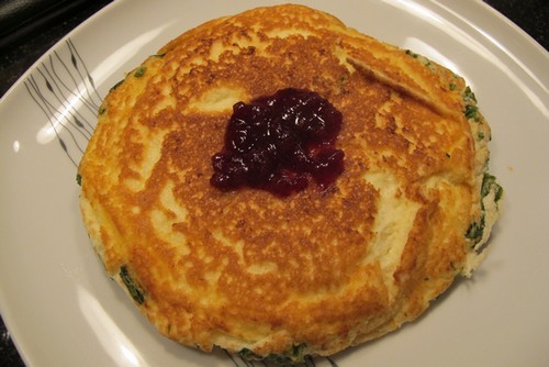 Następnie delikatnie przewróć omlet na drugą stronę i dosmaż.